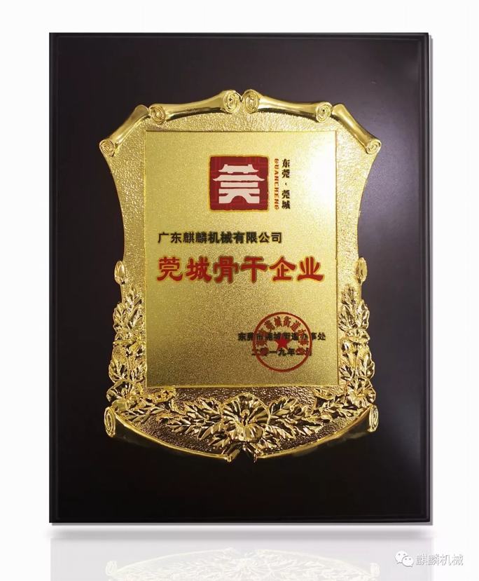 麒麟機械榮獲“東莞市莞城骨干企業(yè)稱號”。
