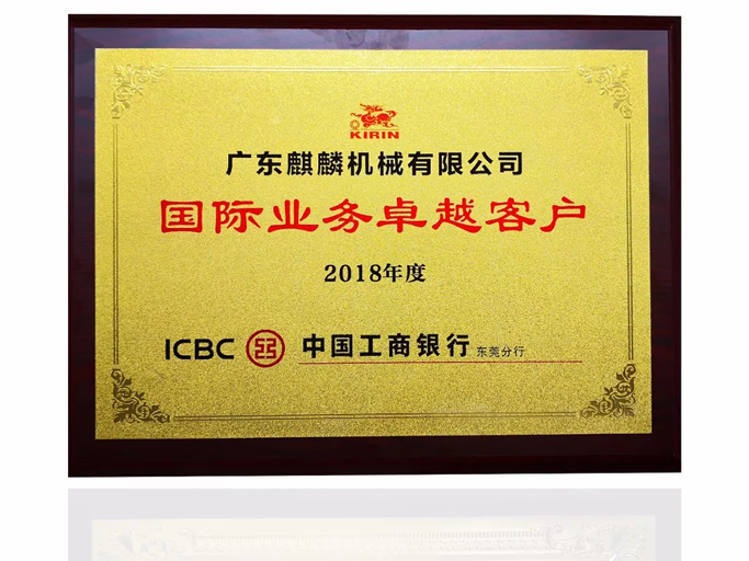 近日,中國工商銀行東莞分行根據(jù)企業(yè)國際業(yè)務(wù)規(guī)模、實際經(jīng)營狀況、資信度和企業(yè)發(fā)展前景等進行綜合分析評定,授予麒麟機械2018年度“國際業(yè)務(wù)卓越客戶”稱號!