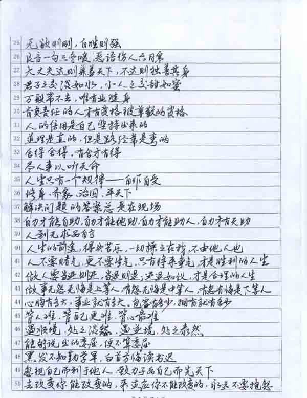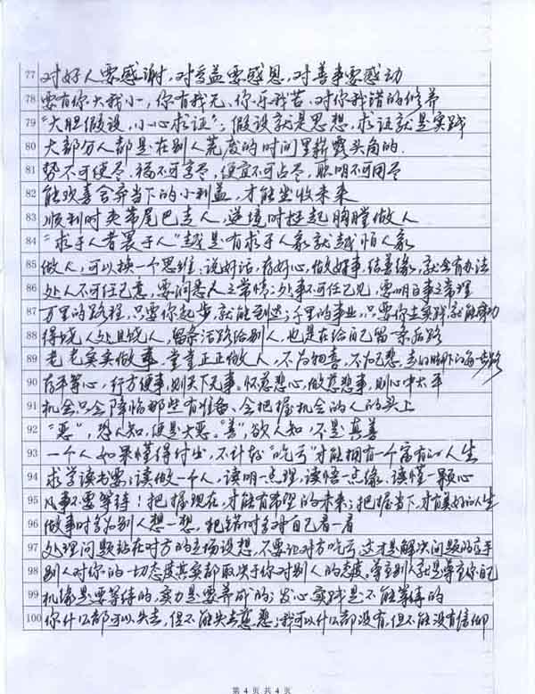 “麒麟杯”第二屆(2010年)硬筆書法作品競賽-主題:存好心、說好話、行好事、做好人-100句好詞好句