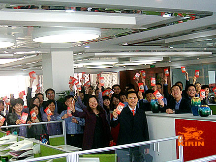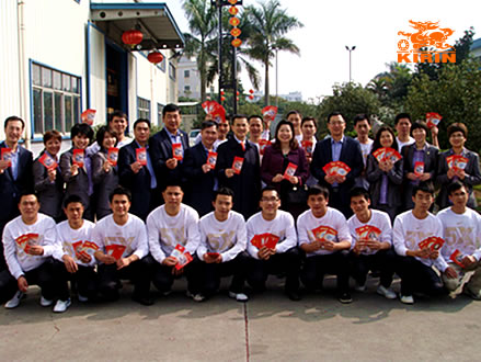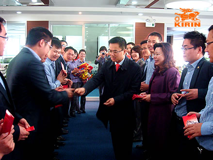 之后麒麟公司總經(jīng)辦各高層人員對廣東省內(nèi)各分公司與物流中心展開新春拜年之旅。首先到達的是以高效率、重管理著稱的物流中心,放鞭炮、派紅包,經(jīng)過一輪簡單而隆重的儀式后,接著總經(jīng)辦成員分別到元嶺分公司、順德分公司、佛山分公司、廣州分公司進行新春年拜。