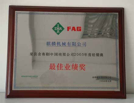 麒麟機(jī)械有限公司榮獲舍弗勒(中國)有限公司“2005年經(jīng)銷商最佳業(yè)績獎”