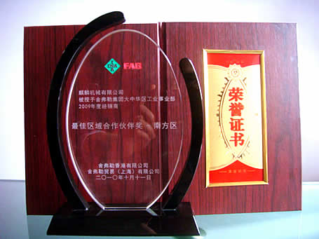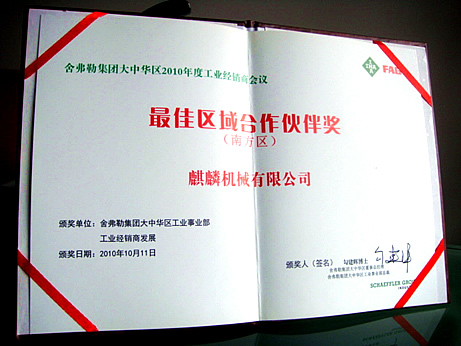 會議尾聲是舍弗勒集團(tuán)對2010年度全國優(yōu)秀的經(jīng)銷商進(jìn)行表彰,其中麒麟機(jī)械有限公司獲得了“最佳區(qū)域合作伙伴獎(南方區(qū))”的榮譽(yù)稱號,此實(shí)至名歸的稱號也是對麒麟機(jī)械有限公司向中國用戶提供長期優(yōu)質(zhì)而便捷的FAG軸承產(chǎn)品的肯定。