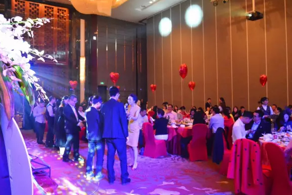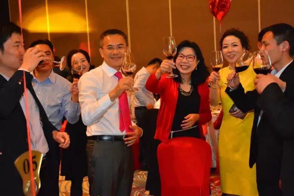晚會(huì)期間,董事總經(jīng)理黃總帶領(lǐng)公司高層來到宴會(huì)中間,親切地同大家握手交談,互敬美酒。