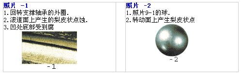 損傷狀態(tài):在滾道面上產生的弱光澤的暗色梨皮狀點蝕。